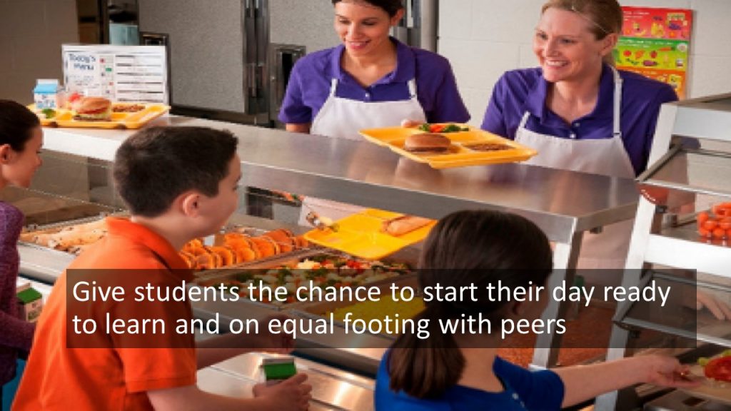 Every morning, before the school day begins, the School Breakfast Program provides students in need with a nutritious breakfast, giving them the chance to start their day ready to learn and on equal footing with peers.